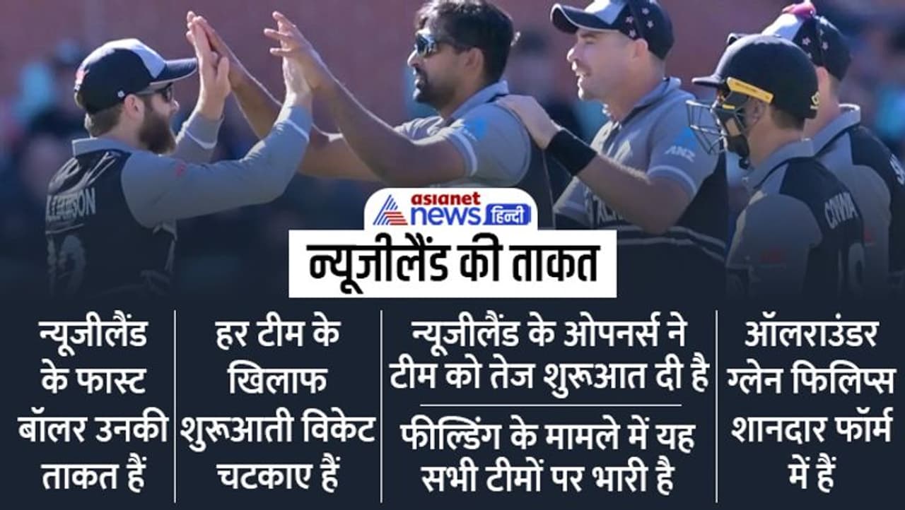 न्यूजीलैंड की कमजोरी- न्यूजीलैंड की कमजोरी उनका मिडिल ऑर्डर है। शुरू में कॉनवे और एलन तेज शुरूआत करते हैं और बाद में केन विलियम्सन और फिलिप्स रन गति बढ़ाते हैं। हालांकि हार्ड हिटर जिम्मी नीशम अभी तक कोई बेहतर प्रदर्शन नहीं कर पाए हैं।