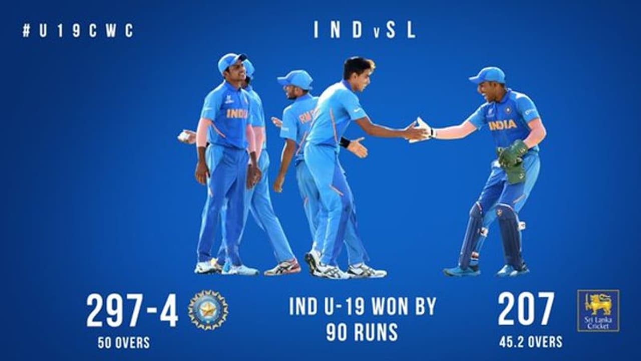 सलामी बल्लेबाज यशस्वी जायसवाल (59), कप्तान प्रियम गर्ग (56) और विकेटकीपर ध्रुव जुरेल (नाबाद 52) की अर्धशतकीय पारियों के बाद गेंदबाजों के दमदार प्रदर्शन से गत चैम्पियन भारत ने रविवार को यहां आईसीसी अंडर-19 विश्व कप के अपने शुरुआती मुकाबले में श्रीलंका को 90 रन से शिकस्त दी।