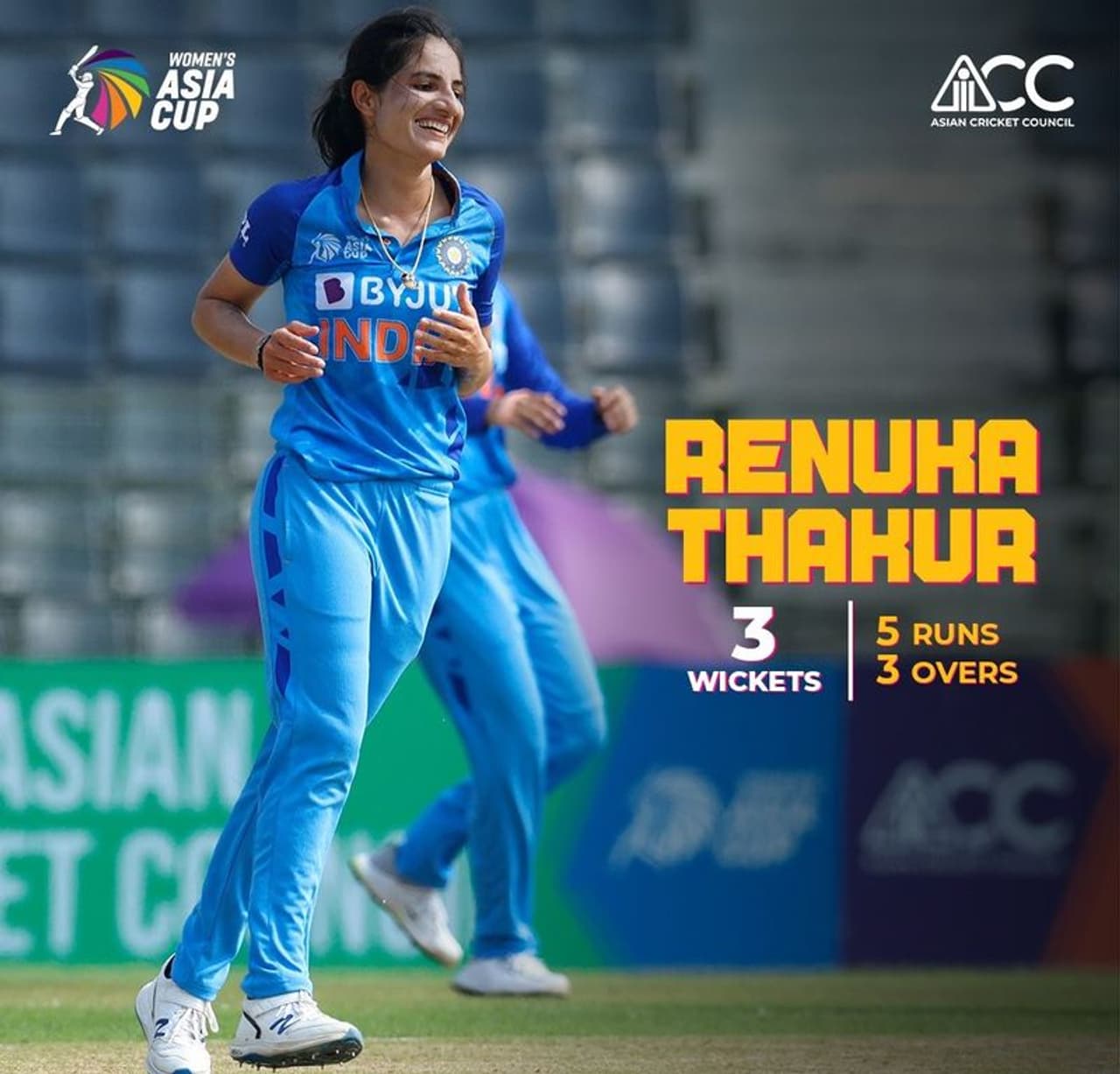भारतीय महिला टीम की गेंदबाज रेणुका सिंह ने फाइनल मुकाबले में गदर मचा दिया। रेणुका ने 3 ओवर में सिर्फ 5 रन दिए और श्रीलंका की 3 खिलाड़ियों को आउट किया। वहीं दीप्ति शर्मा को भले ही विकेट नहीं मिला लेकिन उन्होंने 4 ओवर में केवल 7 रन ही खर्च किए। राजेश्वरी गायकवाड़ ने 4 ओवर में 16 रन दिए लेकिन 2 विकेट हासिल किए। स्नेह राणा हमेशा की तरह बल्लेबाजों पर हावी रहीं और 4 ओवर में 13 रन देकर 2 खिलाड़ियों को पवैलियन भेजा। हेमलता ने 3 ओवर में सिर्फ 8 रन खर्च किए। शेफाली वर्मा थोड़ी महंगी साबित हुईं और 2 ओवर में 16 रन दिए। हालांकि भारतीय गेंदबाजी पूरे मैच में हावी रही और कोई भी बल्लेबाज खुलकर शॉट नहीं लगा पाया। कसी गेंदबाजी के सामने श्रीलंका की टीम ने सिर्फ 5 चौके लगाए और 1 भी छक्का नहीं लगा पाईं।