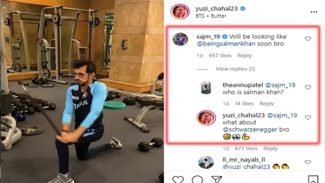 गुरुवार को पोस्ट किए गए वीडियो को शेयर कर युजवेंद्र चहल ने लिखा- यह सब ताकत के बारे में है, शारीरिक और मानसिक रूप से भी। हालांकि, युजी के पतले शरीर को देख फैंस और कुछ खिलाड़ी भी उन्हें खूब ट्रोल कर रहे हैं। इंग्लैंड के पूर्व क्रिकेटर साजिद महमूद (Sajid Mahmood) ने इसपर बहुत मजेदार कमेंट किया और लिखा कि, बहुत जल्द सलमान खान बन जाओगे। इसपर युजी ने मजाकिया अंदाज में रिप्लाई किया कि 'आर्नोल्ड श्वार्जनेगर के बारे में क्या ख्याल है?' बता दें आर्नोल्ड दुनिया के फेमस बॉडी बिल्डर्स में से एक हैं।