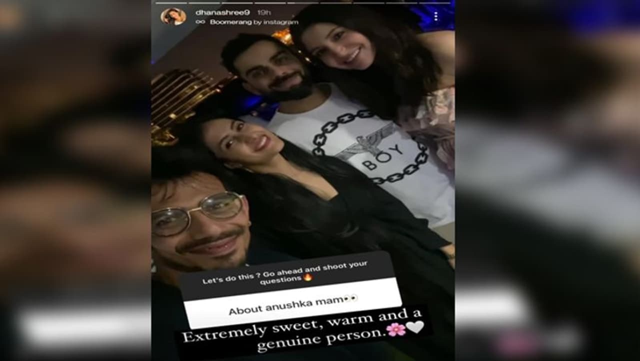 चहल की वाइफ धनाश्री ने इंस्टग्राम पर एक मजेदार 'Ask Me Anything' सेशन किया। जिसमें उन्होंने विराट और अनुष्का के बारे में अपनी दिल की बात शेयर की।