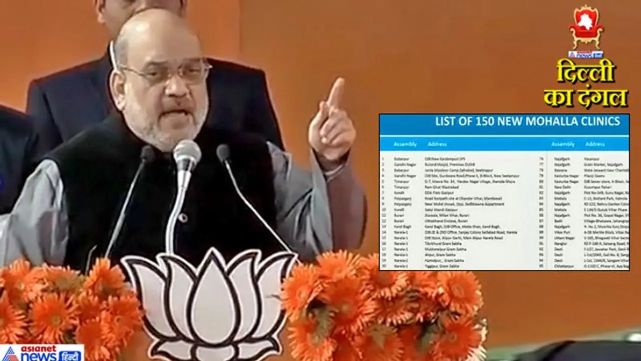 अमित शाह की सभा के बाद आम आदमी पार्टी के ट्विटर से कई ट्वीट साझा हुए और इसके जरिए पार्टी ने ये बताने की कोशिश की कि केजरीवाल ने दिल्ली में क्या क्या काम किए। पार्टी ने दिल्ली के मोहल्ला क्लीनिक की एक लिस्ट भी जारी की। लिस्ट में 150 क्लीनिक हैं। पार्टी ने लिखा, आज दिल्ली सरकार ने समूचे दिल्ली में एक साथ 150 मोहल्ला क्लीनिक की शुरुआत की है। हम न्यौता देते हैं और चाहेंगे कि अमित शाह इन मोहला क्लीनिक का विजिट करें।