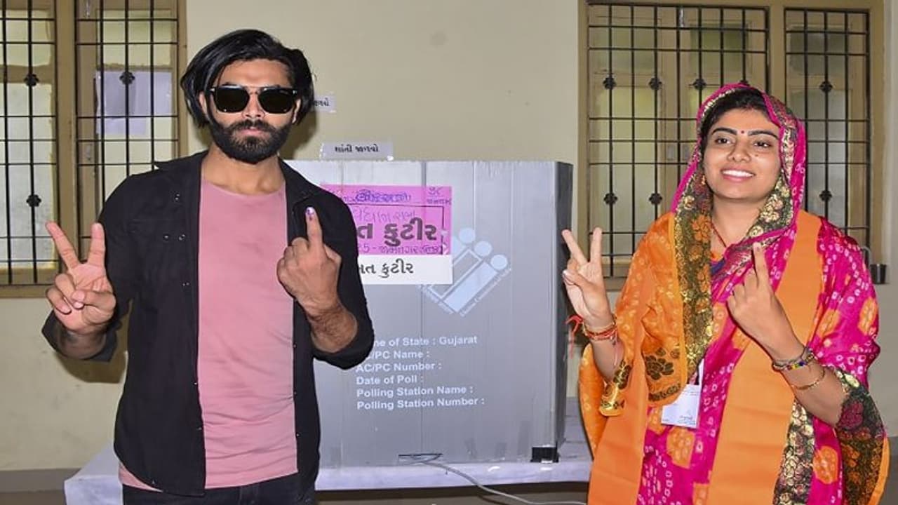 क्रिकेटर रवींद्र जडेजा ने जामनगर स्थित मतदान केंद्र पर अपना वोट डाला। वह पत्नी रिवाबा जडेजा के साथ पोलिंग बूथ पहुंचे। इस दौरान उन्होंने मीडिया से कहा कि वह पत्नी के साथ खड़े हैं। रवींद्र जडेजा ने कहा, "मैं लोगों से बड़ी संख्या में मतदान करने की अपील करता हूं। लोगों को उम्मीद है कि रिवाबा अच्छा काम करेगी।"