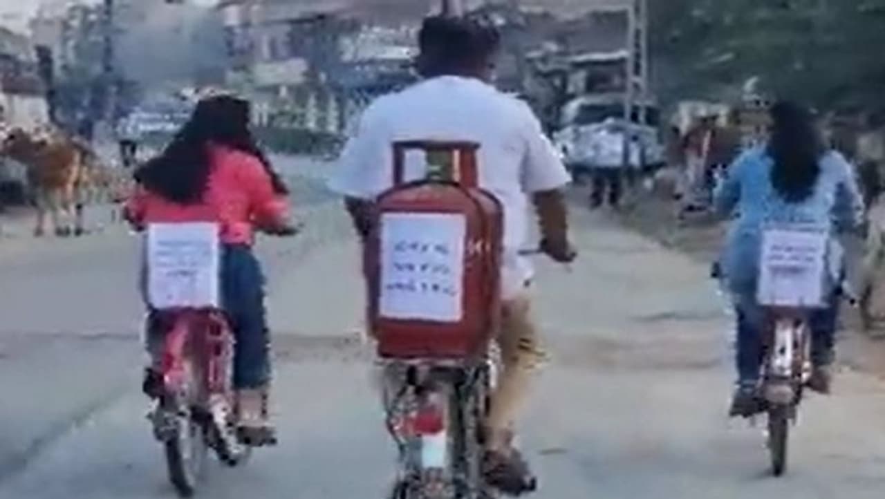 साइकिल पर गैस सिलेंडर लेकर वोट डालने निकले कांग्रेस विधायक