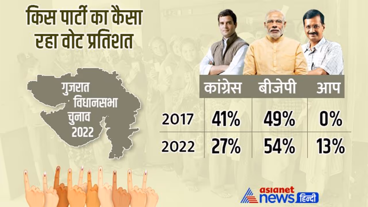 बीजेपी ने 2022 के गुजरात विधानसभा चुनाव में रिकॉर्ड जीत दर्ज की है। 156 सीटें जीतने के साथ ही ये गुजरात के इतिहास में अब तक की सबसे ज्यादा सीटें हैं। वहीं, इसके उलट कांग्रेस की अब तक की सबसे बड़ी हार हुई है। कांग्रेस 1990 की 33 सीटों की तुलना में इस बार महज 17 सीटों पर सिमट गई। कांग्रेस की हार के पीछे आखिर सबसे बड़ी वजह क्या रही, आइए जानते हैं।