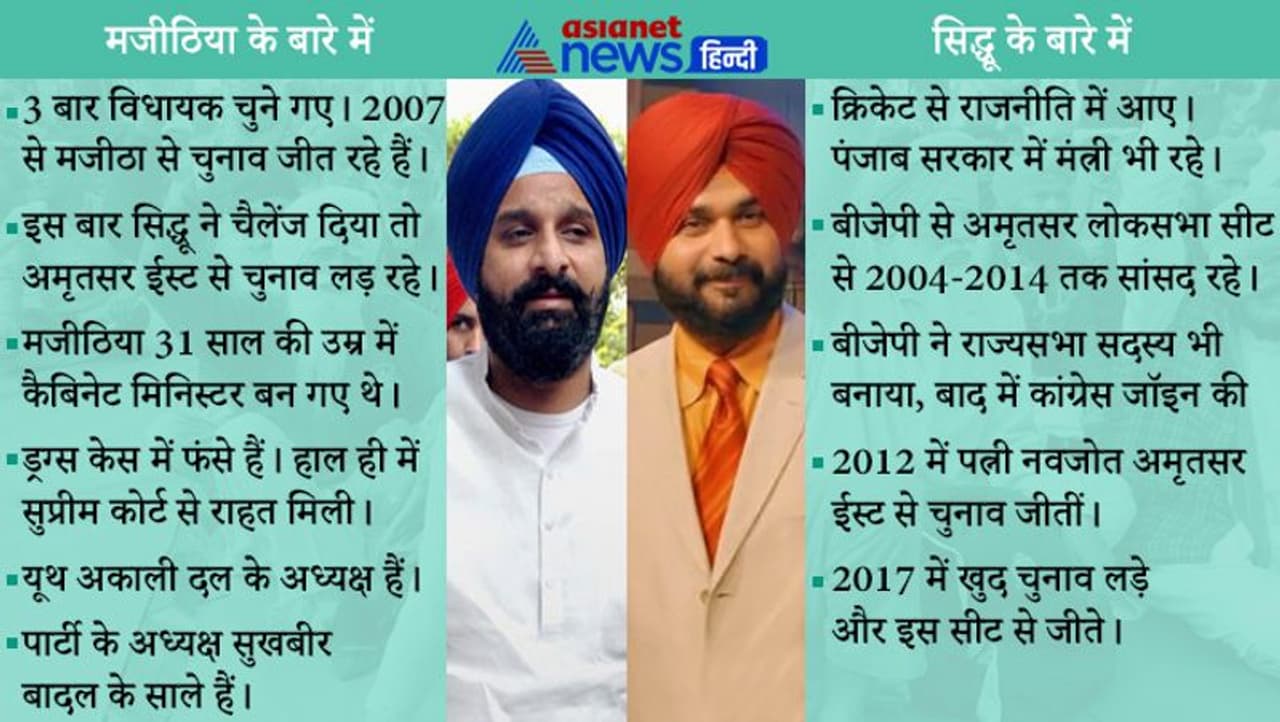मनोज ठाकुर, अमृतसर। पंजाब में विधानसभा चुनाव हैं। सत्ताधारी कांग्रेस के सामने बड़ा संकट है कि वह फिर से राज्य में वापसी करे और सरकार बनाए तो दूसरी तरफ पार्टी प्रधान नवजोत सिंह सिद्धू (Navjot Singh Sidhu) के सामने उससे भी बड़ी चुनौती है कि वह अपनी घरेलू सीट अमृतसर ईस्ट से चुनाव जीतकर आएं। पंजाब में ये सबसे हॉट सीट बन गई है। वजह साफ है कि सिद्धू का मुकाबला इस बार अकाली दल के दिग्गज नेता बिक्रम सिंह मजीठिया (Bikram Singh Majithia) से हो रहा है। दोनों के बीच जितनी गहरी सियासी अदावत है, उतनी ही गहरी अब ये चुनावी लड़ाई हो गई है। एक और फैक्ट है कि पॉलिटिकल करियर में दोनों दिग्गज अब तक अजेय रहे हैं। लेकिन, इस बार किसी एक को तो हारना ही होगा। अमृतसर ईस्ट का चुनावी हाल जानने के लिए एशियानेट न्यू्ज हिंदी की टीम स्थानीय लोगों के बीच पहुंची और बातचीत की। पढ़ें ये रिपोर्ट...