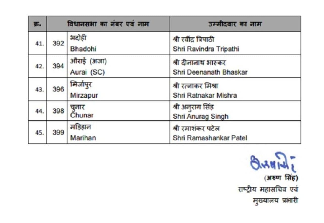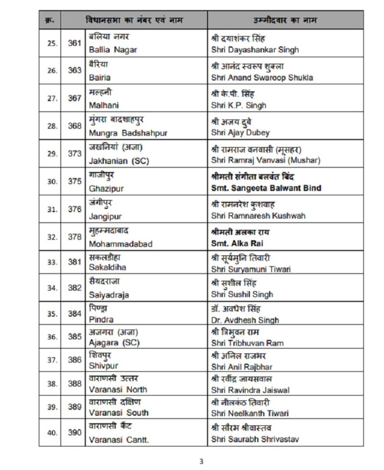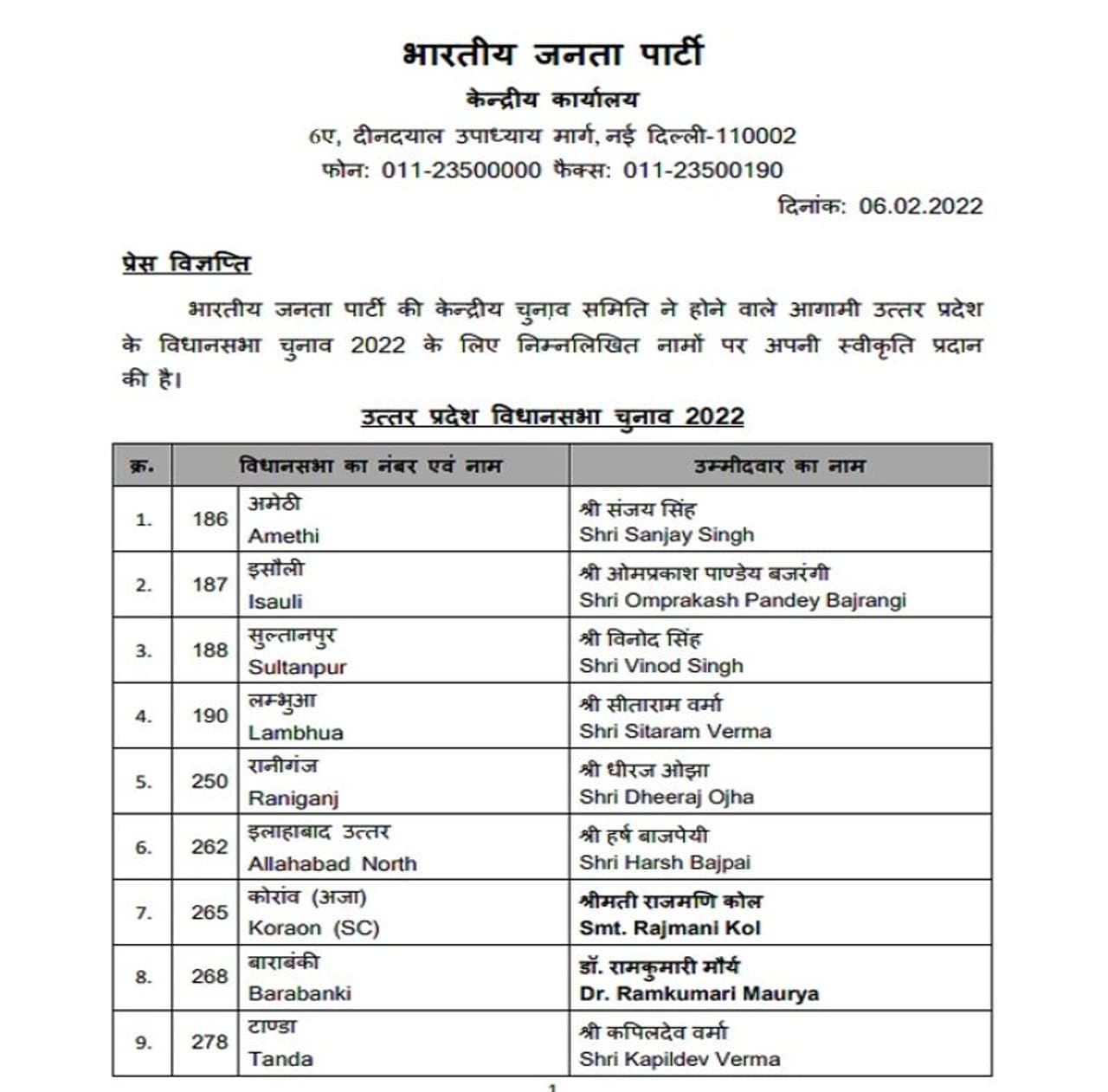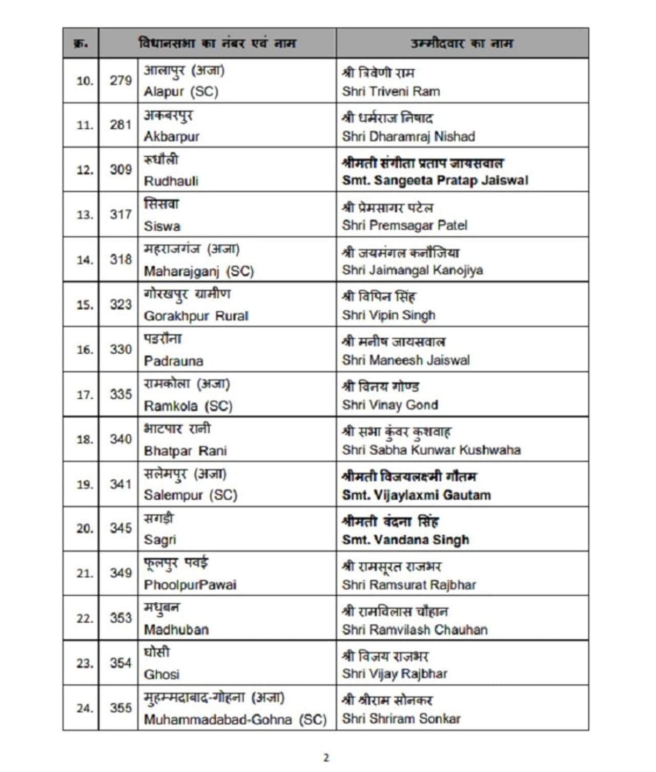 उत्तर प्रदेश में 403 विधानसभा सीटों के लिए हो रहे चुनाव के लिए भाजपा ने प्रत्याशियों की एक और लिस्ट जारी कर दी है। इस लिस्ट में 45 उम्मीदवारों के नाम हैं।