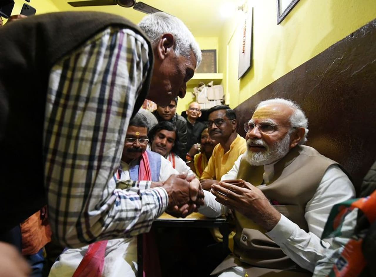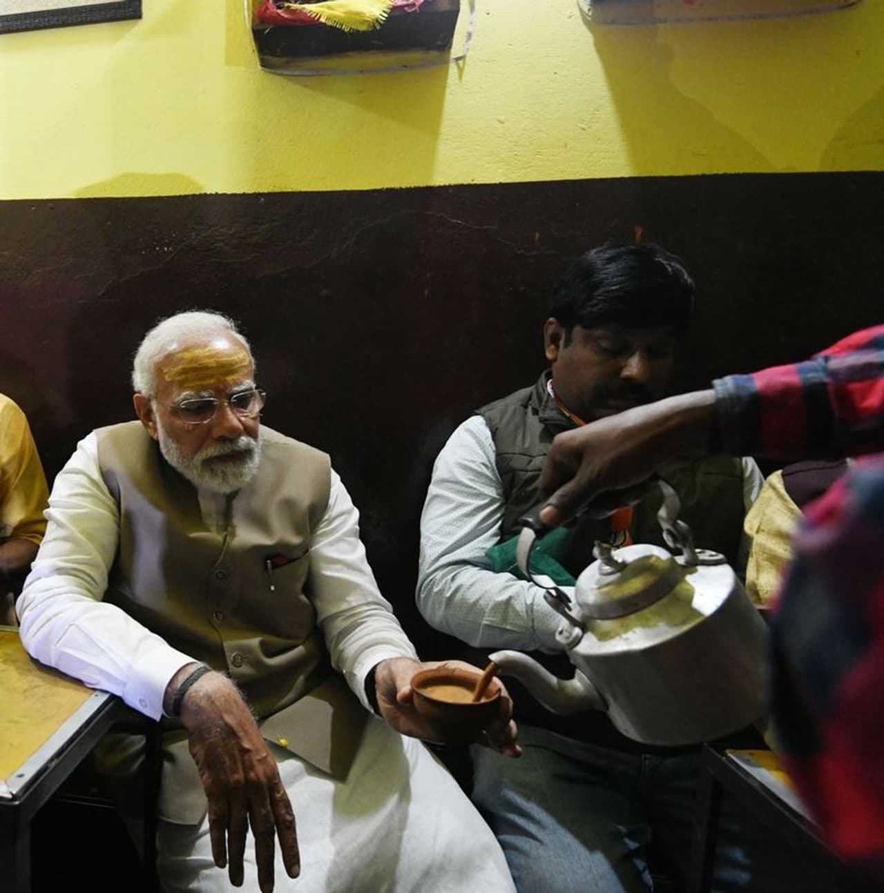 प्रधानमंत्री नरेंद्र मोदी ने शुक्रवार को अपने संसदीय क्षेत्र वाराणसी में रोड शो किया। इसके बाद प्रधानमंत्री एक चायवाले की दुकान पर पहुंचे। उन्होंने कुल्हड़ वाली चाय का मजा लिया।