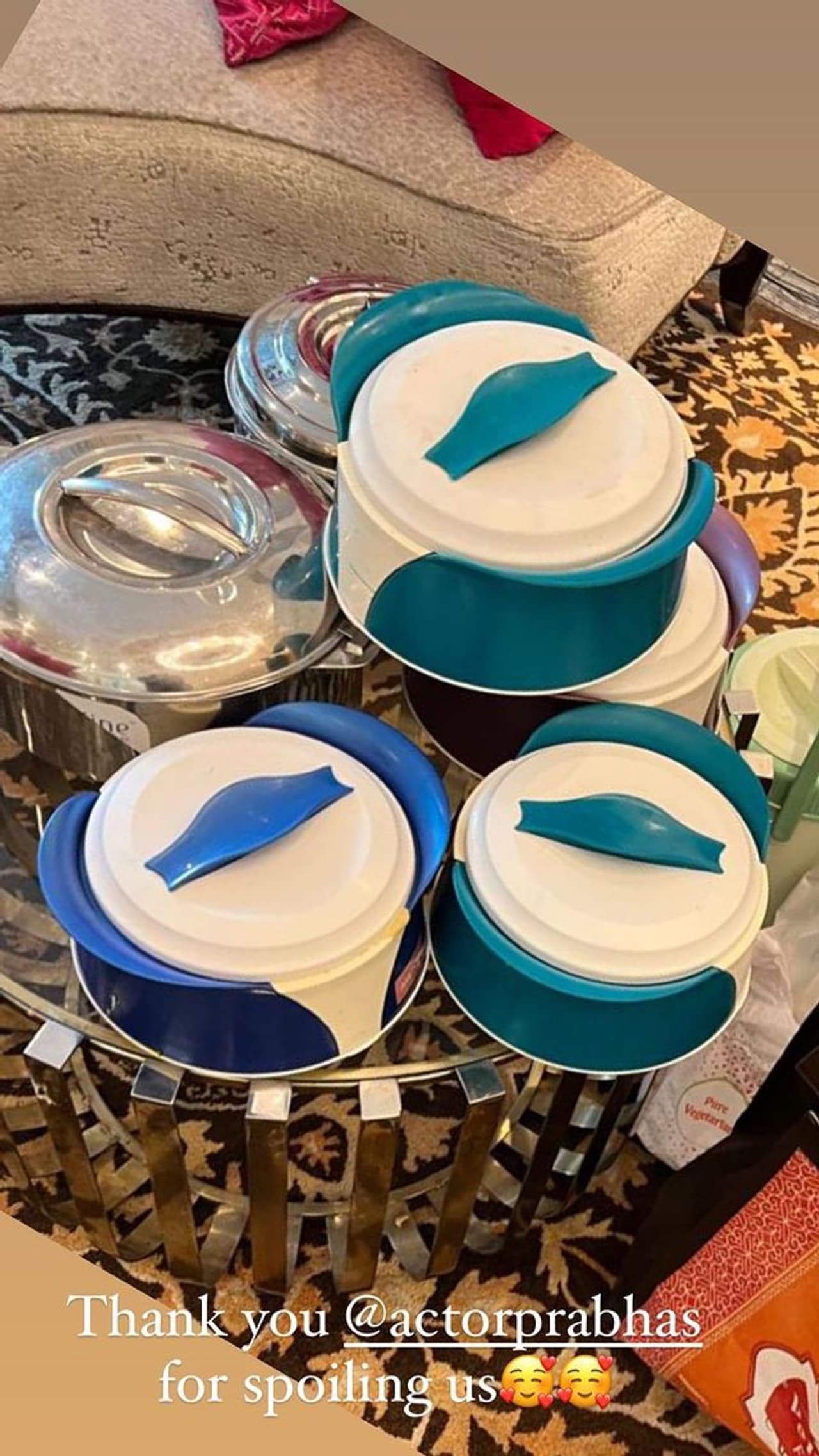 दिशा ने फोटो के कैप्शन में लिखा, 'हमें बिगाड़ने के लिए शुक्रिया प्रभास। बाहुबली का सुपर लजीज खाना एक्ट्रेस की डाइट पर असर डाल सकता है। दरअसल प्रभास जिस फिल्म क्रू के साथ काम करते हैं, उसके लिए स्वादिष्ट और ढेर सारा घर का बना खाना लेकर आते हैं, ये उनकी आदत में शुमार हो चुका है। इससे पहले भी वे अपने सहकर्मियों के लिए टिफिन लाते रहते हैं। पहले अमिताभ बच्चन फिर दीपिका पादुकोण और अब दिशा की बारी है।