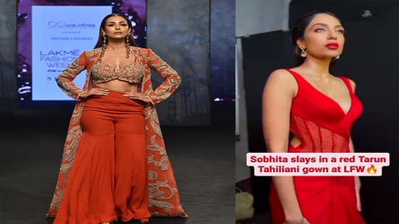 लक्मे फैशन वीक में मॉडल और एक्ट्रेस शोभिता ने अपने रेड लहंगा लुक से फैंस को सरप्राइज किया। देखें दोनों एक्ट्रेस का बिंदास अंदाज़...