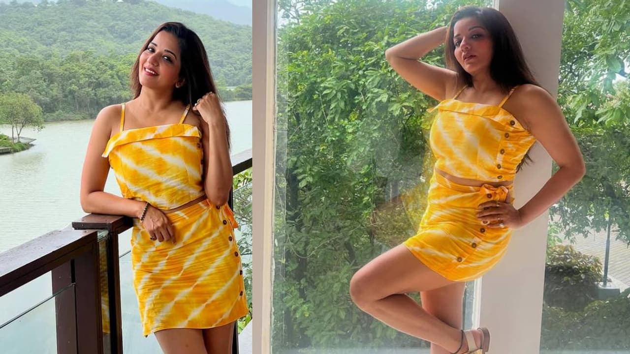एक्ट्रेस मोनालिसा ने खूबसूरत हिल स्टेशन पर यलो मिनी ड्रेस में फोटोशूट करवाया। कॉटेज, बालकनी और झील के किनारे पोज़ देती मोनालिसा का ग्लैमरस अंदाज़ देखने लायक है!