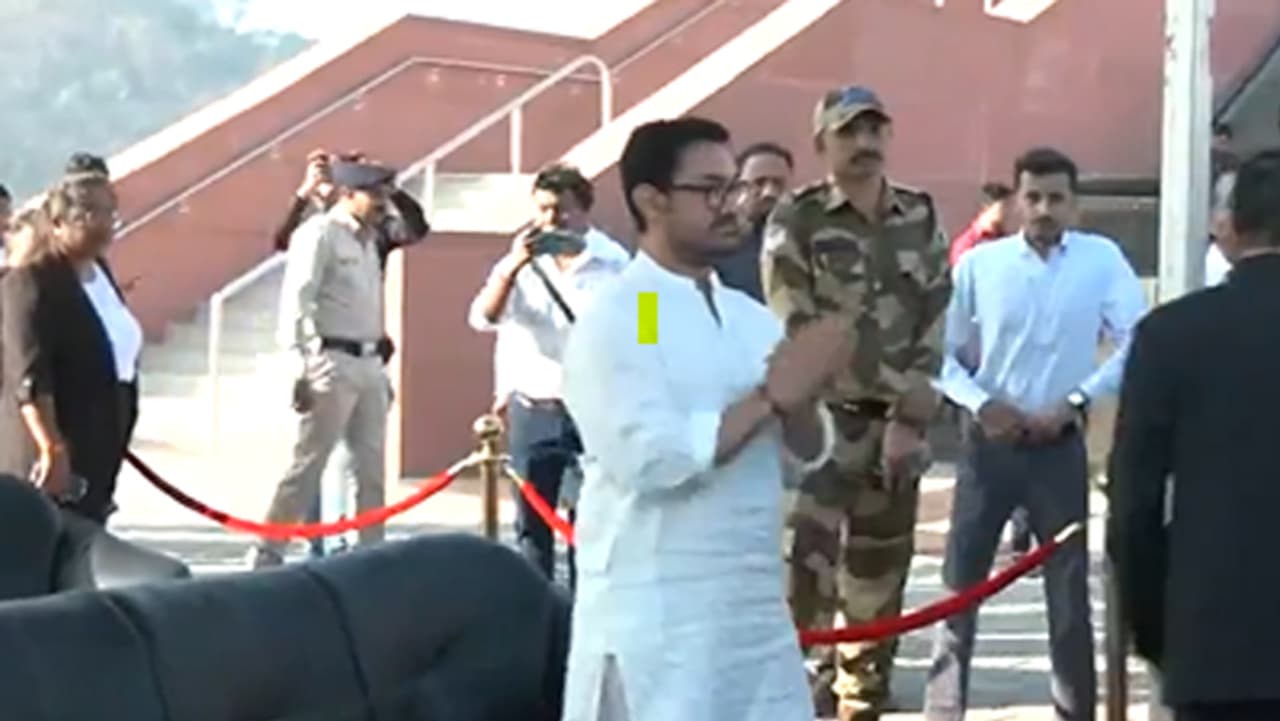 पोस्ट किए गए एक वीडियो और तस्वीरों में आमिर खान को पूरी तरह से व्हाइट कपड़ों में देखा गया । सरफरोश एक्टर ने यहां मौजूद लोगों को अभिवादन किया।