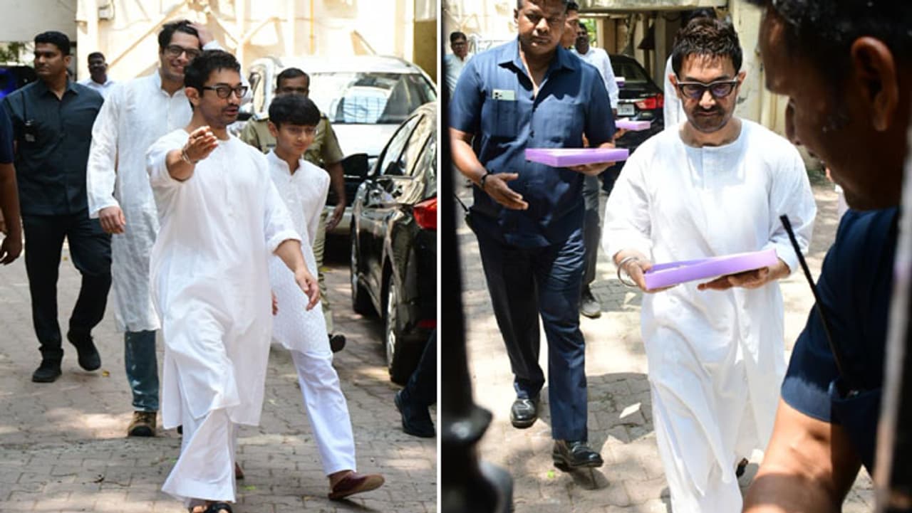 ईद के मौके पर आमिर खान अपने दोनों बेटे जुनैद खान और आजाद राव के साथ घर से बाहर निकले और फैन्स को मुबारकबाद दी। इस दौरान उन्होंने मिठाई भी बांटी।