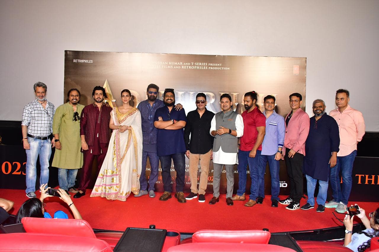 आदिपुरुष (Adipurush) लॉन्चिंग के मौके पर डायरेक्टर ओम राउत, प्रोड्यूसर भूषण कुमार, प्रभास और कृति सेनन (Om Raut, Bhushan Kumar, Prabhas, Kriti Sanon) मौजूद रहे ।