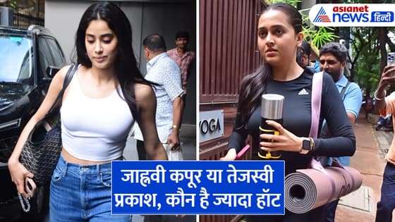 एंटरटेनमेंट डेस्क, Jhanvi Kapoor, Tejashwi Prakash spotted in hot look । जाह्नवी कपूर (Janhvi Kapoor) और तेजस्वी प्रकाश दोनों ही बेहद टेलेंटेड और खूबसूरत एक्ट्रेस हैं । दोनों मुंबई की डिफरेंट लोकेशन पर स्पॉट होती है।तेजस्वी और जाह्नवी दोनों फिटनेस क्रीक हैं। एक्ट्रेसेस को जिम और योगा सेंटर के बाहर स्पॉट किया जाता है । हाल ही में जाह्नवी को डेनिम और व्हाइट स्लीवलैस टॉप में स्टनिंग वॉक करते हुए अपनी कार तक पहुंची । इस दौरान उन्होंने अपनी अदाओं का भी जलवा बिखेरा। वहीं तेजस्वी प्रकाश को योगा सेंटर के बाहर टाइट आउटफिट में स्पॉट किया गया । वायरल वीडियो में देखें तेजस्वी और जाह्नवी का हॉट लुक...