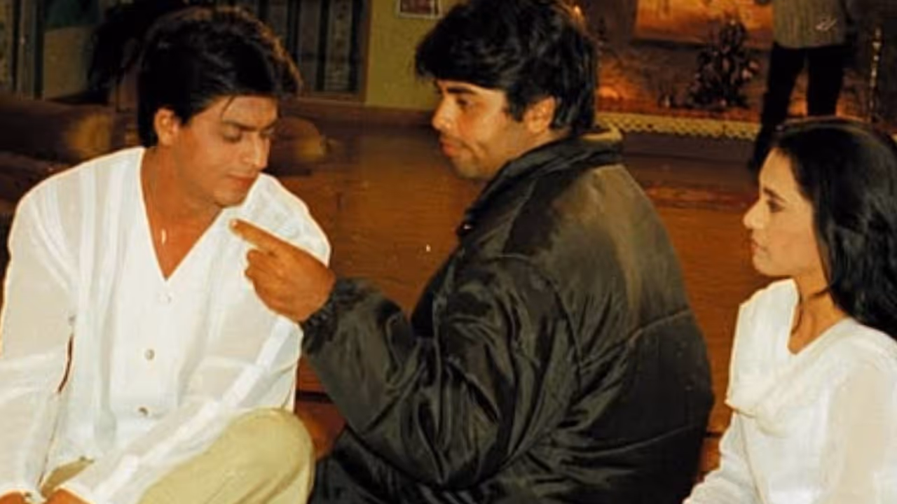 एक तस्वीर में करण शाहरुख और रानी को एक सीन समझाते हुए दिखाई दे रहे हैं। इसमें डायरेक्टर एकदम यंग दिखाई दे रहे हैं। काजोल वेडिंग ड्रेस में दिखाई दे रही हैं।