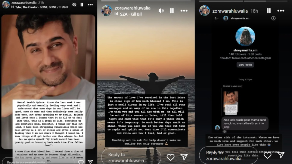 जोरावर ने अपनी एक तस्वीर शेयर करते हुए इंस्टा स्टोरी पर लिखा है, "मेंटल हेल्थ अपडेट: पिछले हफ्ते से मैं शारीरिक और मानसिक रूप से बहुत कमज़ोरी महसूस कर रहा था और मैं समझ गया हूं कि हमारी जिंदगी में कुछ दिन बेहतर होंगे। कुछ ठीक-ठाक होंगे और कुछ जाहिरतौर पर वाकई बुरे होंगे। लेकिन अपनी फैमिली, दोस्तों और प्रियजनों से बात करने के बाद मुझे पता चला कि ऐसा महसूस होना ठीक है। यह जिंदगी का ग्राफ है। कभी ऊपर तो कभी नीचे।"