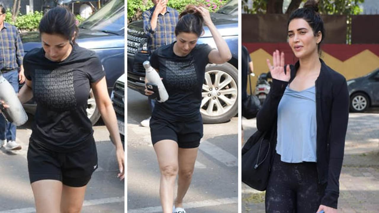 50 साल की मलाइका अरोड़ा कुछ समय पहले बांद्रा में योगा क्लास के बाहर नजर आईं। इस दौरान वह बिना मेकअप दिखी। वहीं, टीवी एक्ट्रेस करिश्मा तन्ना जिम के बाहर स्पॉट हुईं।