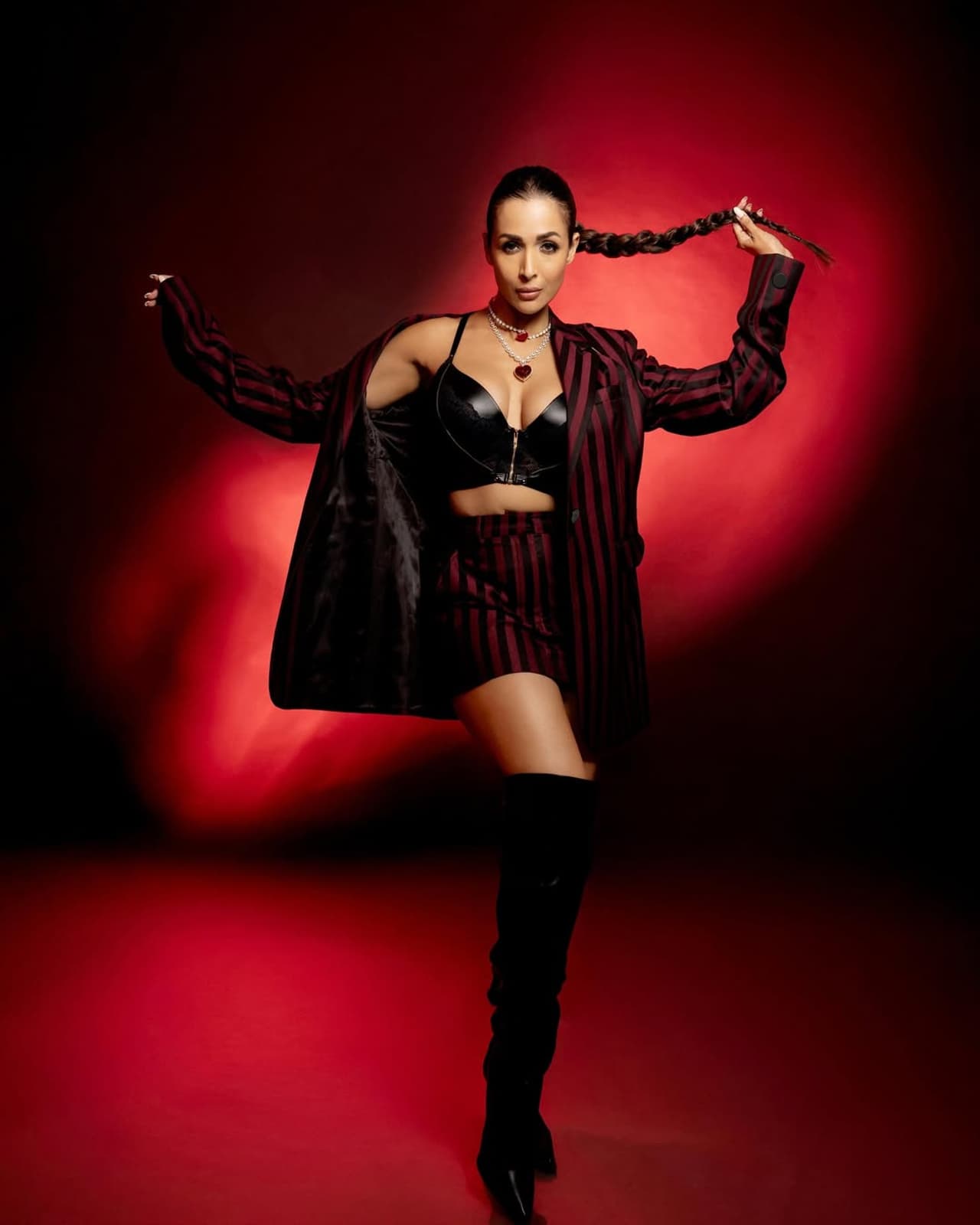 तस्वीरों में मलाइका अरोड़ा ने जो ब्लेजर पहना है, वह अलूला ब्रांड का है। उनका ब्रालेट हंकेमोलर इंडिया ब्रांड का है।