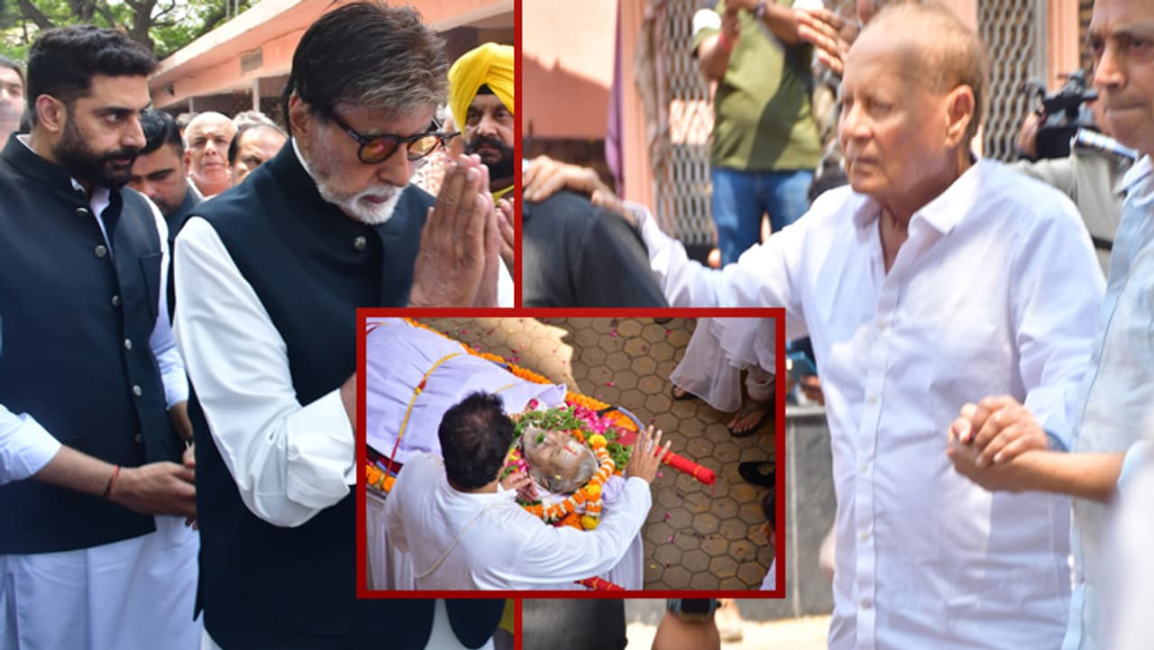 सलमान खान के पिता सलीम खान बेटे अरबाज़ खान संग मनोज कुमार को अंतिम विदाई देने पहुंचे।