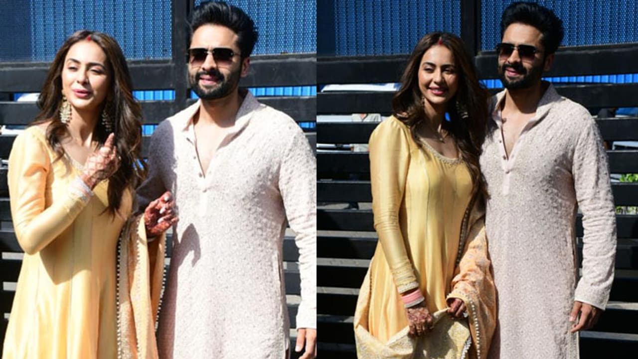 Newlywed Rakul Preet Singh Jackky Bhagnani. रकुल प्रीत सिंह और जैकी भगनानी शादी के बंधन में बंध गए हैं। कपल की शादी 21 फरवरी को गोवा में हुई। रकुल-जैकी मुंबई लौट आए हैं और उनकी फोटोज वायरल हो रही हैं।