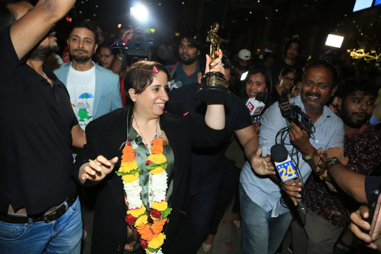 - 12 PHOTOS: ऑस्कर जीतकर मुंबई लौटी प्रोड्यूसर जमकर नाची, एयरपोर्ट पर हुआ जोरदार स्वागत