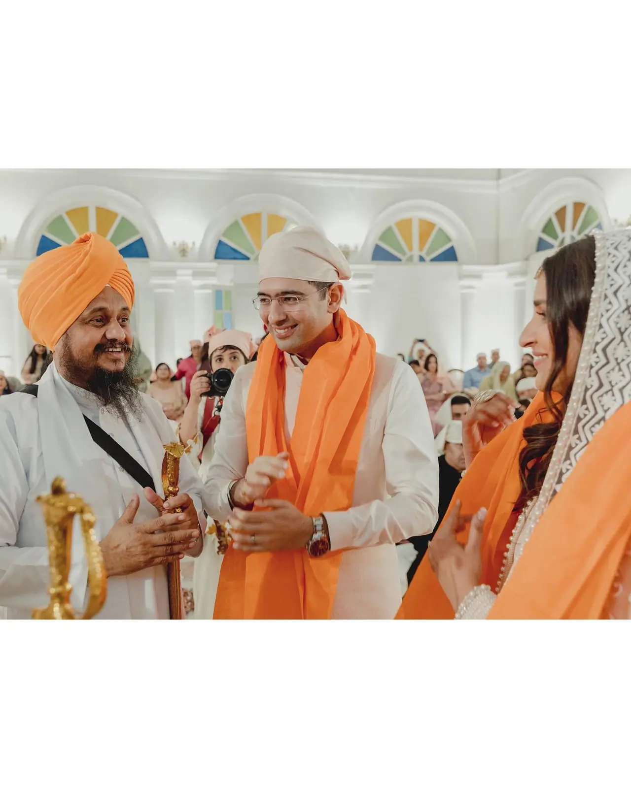 परिणीति चोपड़ा ने जो तस्वीरे शेयर की हैं, वे उनकी सगाई के दौरान रखी गई अरदास की हैं, जिसमें उनके साथ राघव और अन्य फैमिली मेंबर्स को भी देखा जा सकता है।