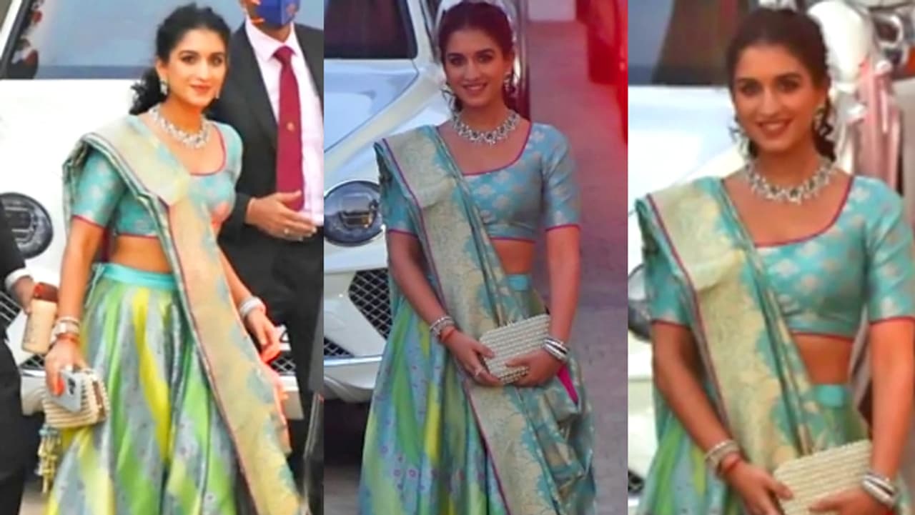 ईशा अंबानी के जुडवा बच्चों की वेलकम पार्टी में अंबानी की होनेवाली बहू राधिका मर्चेंट भी पहुंचीं। इस दौरान राधिका ग्रीन कलर के लहंगे में बेहद खूबसूरत लग रही थीं।