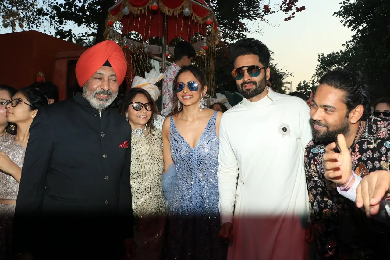 विक्की भगनानी और उनकी गर्लफ्रेंड निधि सिद्धराज की बरात में रकुल प्रीत सिंह और जैकी भगनानी आकर्षण का केंद्र रहे।