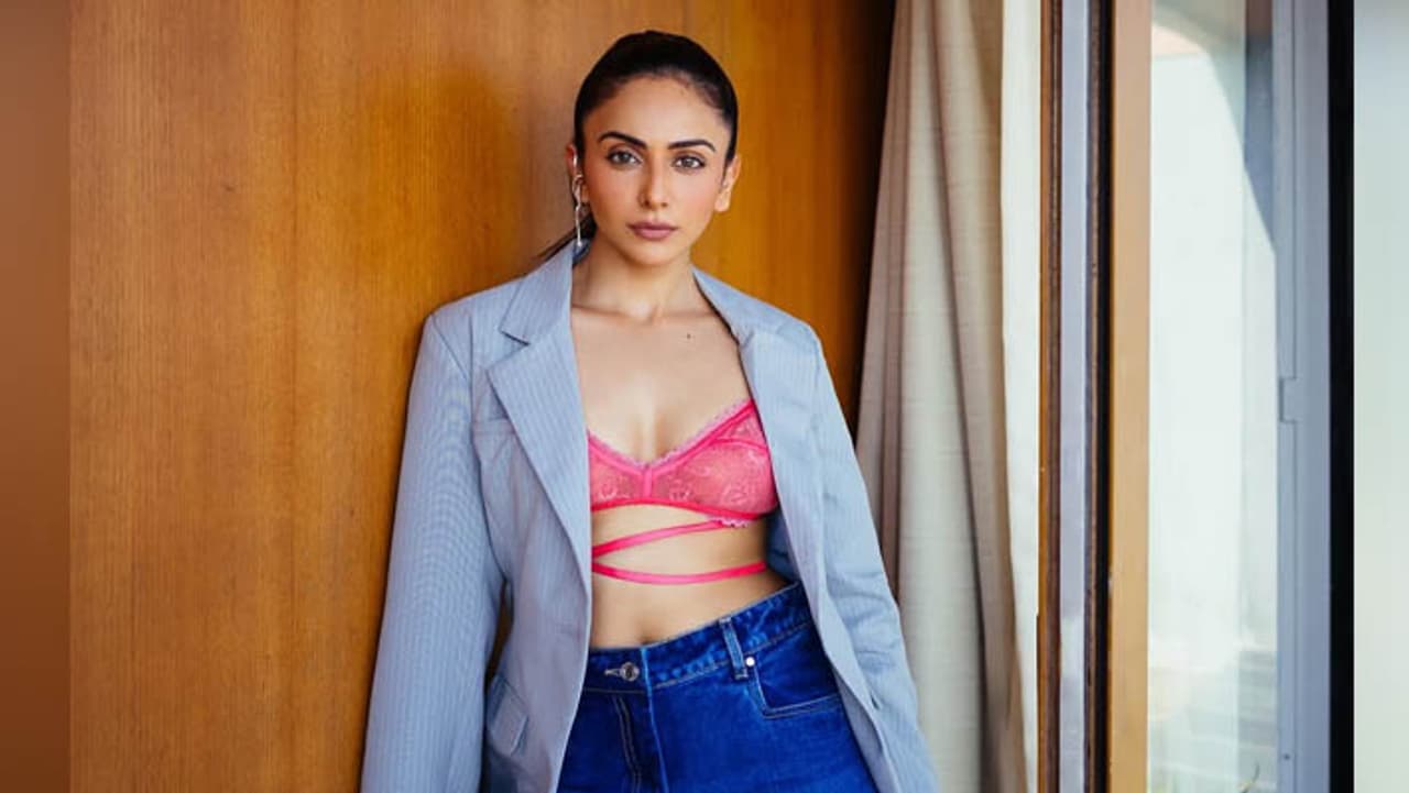 रकुल प्रीत सिंह की कुछ फोटोज तेजी से सोशल मीडिया पर वायरल हो रही हैं, जिसमें वे कोट का बटन खोले अपनी ब्रा फ्लॉन्ट करती दिख रहीं हैं।