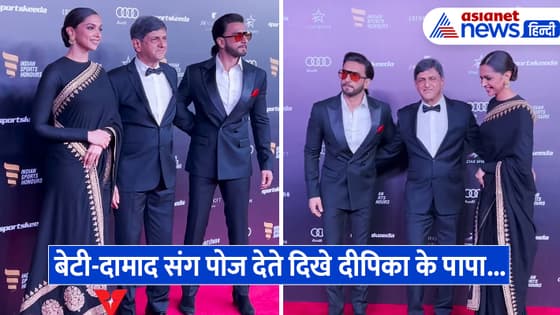 रणवीर सिंह गुरुवार रात को पत्नी दीपिका और ससुर प्रकाश पादुकोण के साथ इंडियन स्पोर्ट्स ऑनर अवॉर्ड्स में पहुंचे। इस दौरान दीपिका के पापा ने दामाद रणवीर और बेटी के साथ जमकर पोज दिए। खास बात ये रही कि फंक्शन में तीनों ब्लैक कलर की ड्रेस में नजर आए। इवेंट में ससुर प्रकाश पादुकोण के साथ दामाद रणवीर सिंह की क्लोज बॉन्डिंग देखने को मिली। इस दौरान दीपिका के पापा काफी यंग लग रहे थे। रणवीर और प्रकाश पादुकोण को साथ में देख एक यूजर ने कमेंट करते हुए कहा- दामाद से ज्यादा हैंडसम तो ससुरजी लग रहे हैं।