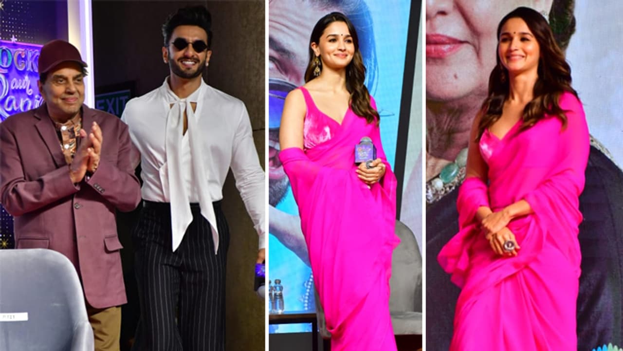रॉकी और रानी की प्रेम कहानी की सक्सेस मीट का आयोजन किया गया। इवेंट में जहां 87 साल के धर्मेंद्र डैशिंग लुक में नजर आए वहीं, गुलाबी साड़ी में आलिया भट्ट बेहद खूबसूरत दिखीं।