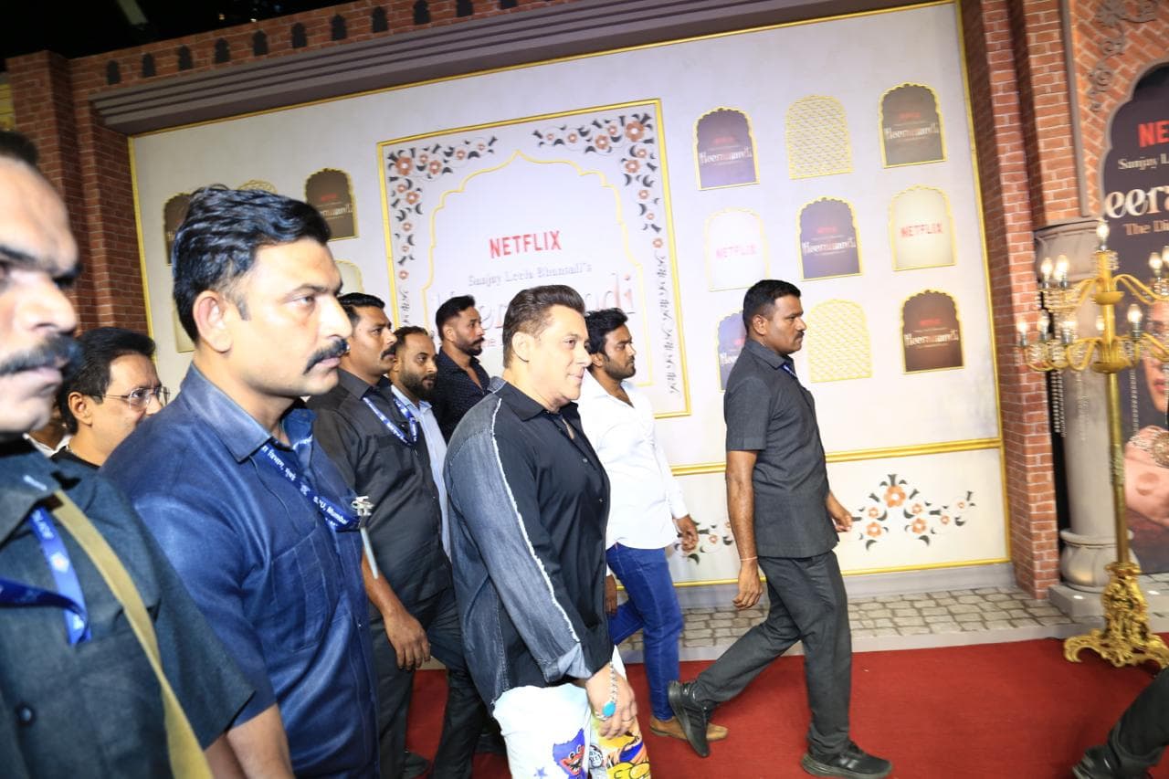 हाल ही में सलमान खान के घर के बाहर फायरिंग हुई थी। एहतियात बरतते हुए सलमान कड़ी सुरक्षा में ‘हीरामंडी’ देखने पहुंचे।