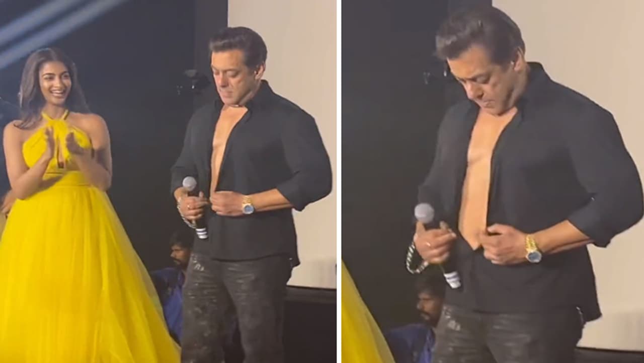 इवेंट से वायरल हो रहे वीडियो में सलमान खान, पूजा हेगड़े सहित अपने स्टार्स के साथ मंच पर खड़े हैं। सलमान ने काली शर्ट और जींस पहन रखी है। इसी बीच सलमान ने अपनी शर्ट के बटन खोलते हुए कहा- तुम्हें लगता है वीएफएक्स से ऐसा होता है। उन्होंने यह भी बताया कि वर्कआउट करने के बाद ही उन्होंने ऐसी बॉडी हासिल की है।