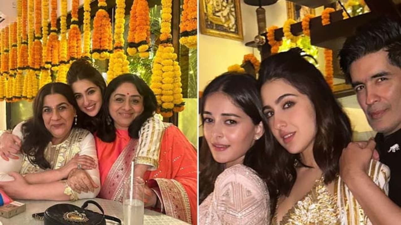 सारा अली खान की दिवाली पार्टी में अनन्या पांडे और फैशन डिजाइनर मनीष मल्होत्रा भी शामिल हुए। तीनों एकसाथ पोज देते भी नजर आए।