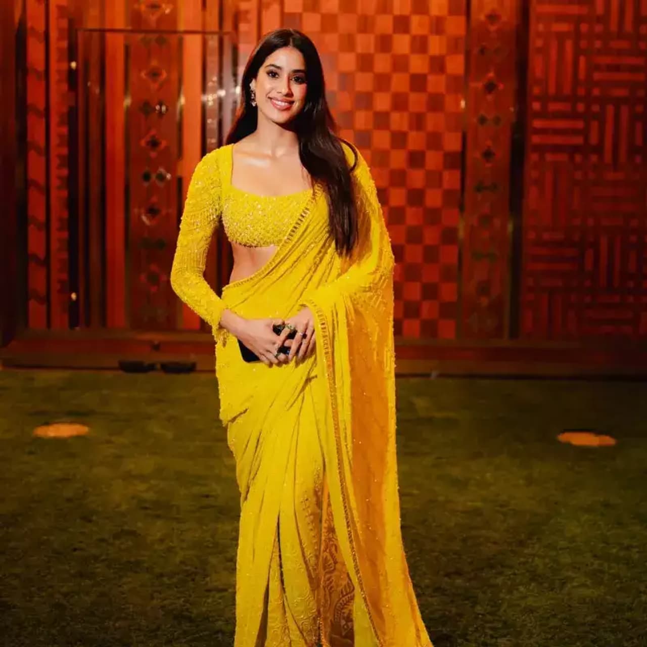 हल्दी के फंक्शन में जाह्नवी कपूर येलो की साड़ी में नजर आईं। इस दौरान वो बेहद खूबसूरत लग रही थीं।