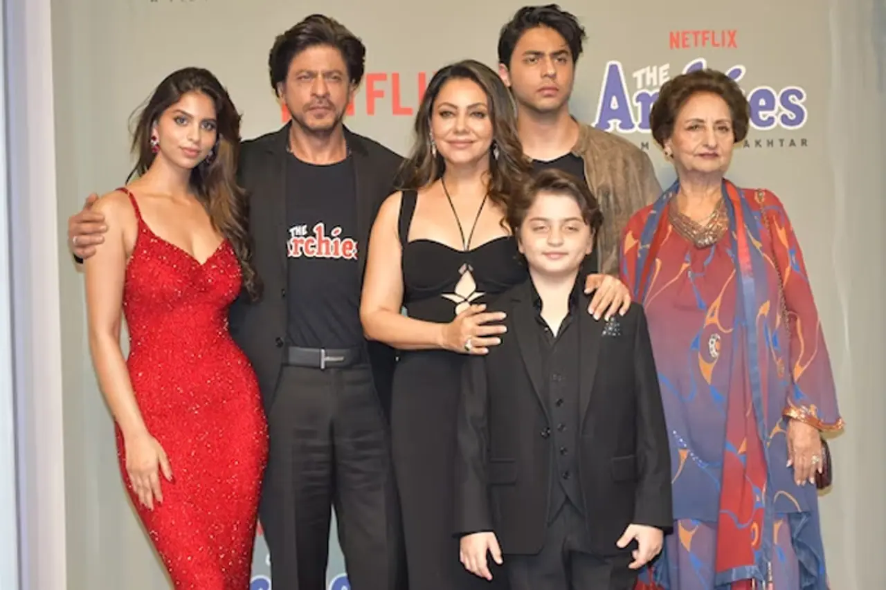 शाहरुख़ खान पत्नी गौरी, बेटे आर्यन, अबराम और सास सविता छिब्बर के साथ सुहाना खान को सपोर्ट करने पहुंचे।