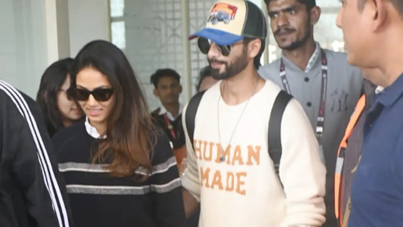 कियारा आडवाणी के साथ फिल्म 'कबीर सिंह' में लीड रोल कर चुके शाहिद कपूर पत्नी मीरा राजपूत के साथ शादी में शरीक होने जैसलमेर पहुंच चुके हैं। शाहिद ने एयरपोर्ट लुक में क्रीम कलर का आउटफिट के साथ स्पोर्ट शूज पहने हुए थे तो वहीं मीरा कैजुअल व्हाट्स शॉर्ट फुल स्लीव्स ड्रेस में नजर आईं। इसके साथ उन्होंने ग्रे लाइनिंग वाली ब्लैक स्वेटर पहनी हुई थी और ब्लैक गॉगल लगाया हुआ था।