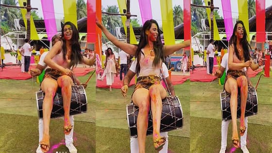 सौंदर्या शर्मा ने इंस्टाग्राम पर होली मनाते हुए का वीडियो शेयर किया है। इसमें वे ढोल पर बैठकर डांस परफॉर्म करती दिख रही हैं। वहीं ढोल बजाने वाला भी इन पलों को जमकर एंजॉय कर रहा है।