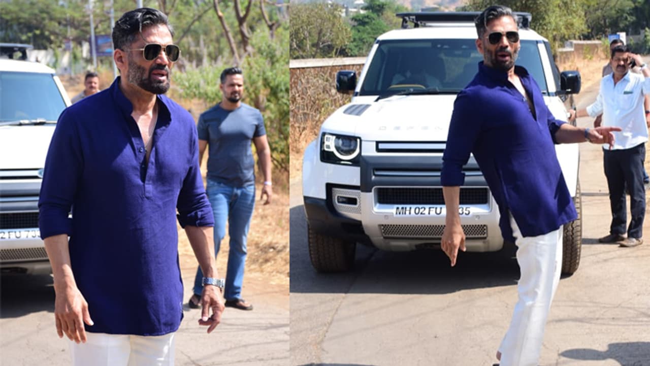 7 PHOTO: बेटी की शादी के लिए खंडाला पहुंचे सुनील शेट्टी, नीला कुर्ता-सफेद पेंट में टशन दिखाते नजर आए अथिया के पापा