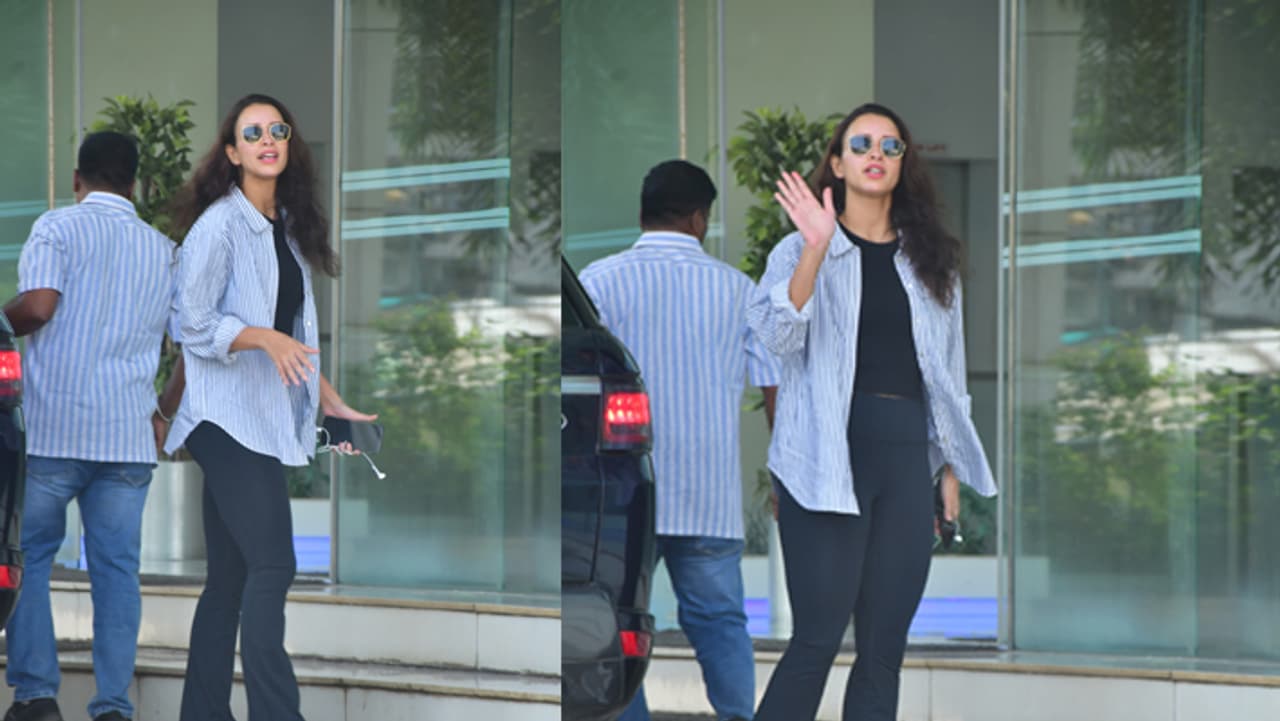 तृप्ति डिमरी ने ऑफिस में एंट्री करने के पहले पैपराजी को स्माइल करते हुए पोज दिए।