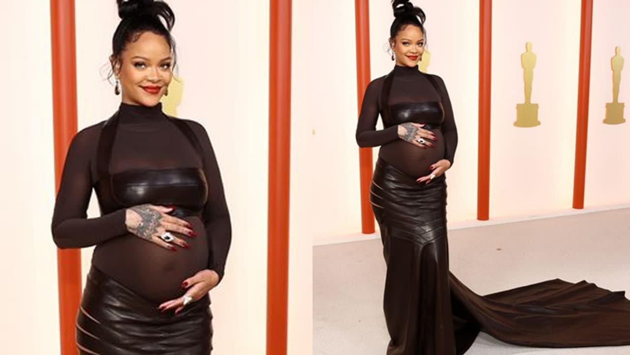 हॉलीवुड की पॉपस्टार रिहाना ने ऑस्कर फंक्शन के दौरान बेबी बंप फ्लॉन्ट किया। ब्लैक गाउन में रिहाना डार्क सेक्सी लुक में नजर आईं।