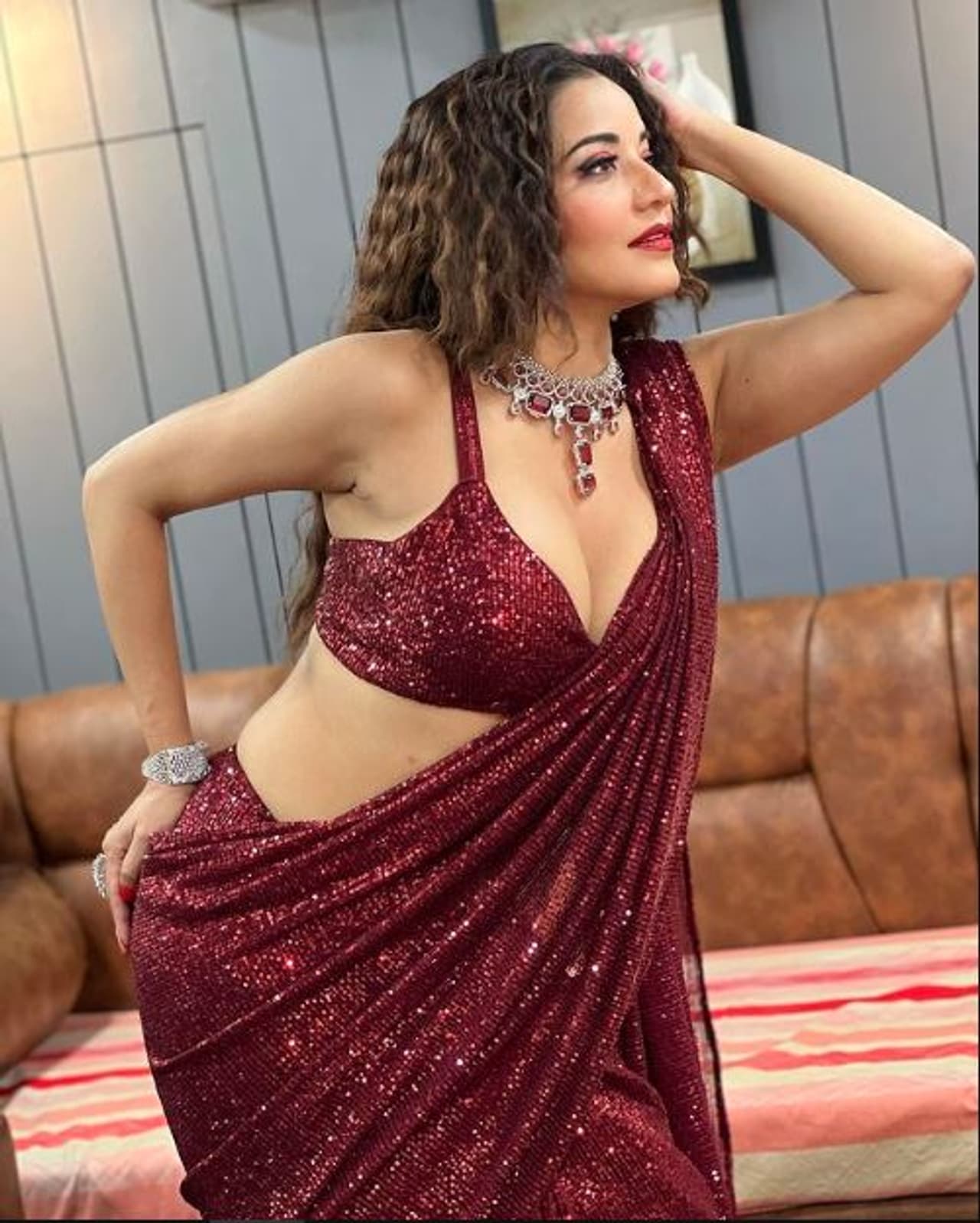 भोजपुरी फिल्म इंडस्ट्री की सनसनी मोनालिसा ने मैरून साड़ी- ब्लाउज में बेहद सेक्सी अंदाज़ की पिक्स शेयर की हैं।