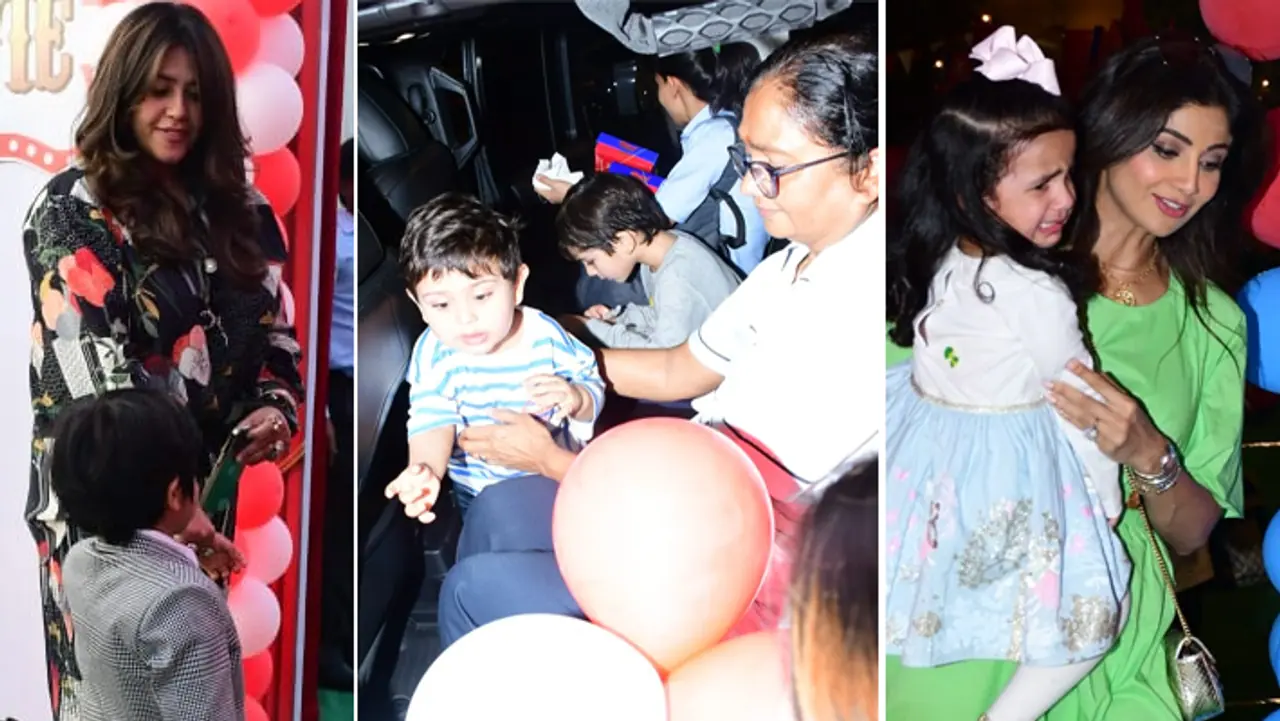 एकता कपूर के बेटे की जन्मदिन पार्टी में करीना कपूर के बेटे जेह अली खान और तैमूर अली खान नैनी के साथ पहुंचे। वहीं, शिल्पा शेट्टी की बेटी समीषा रोती नजर आईं।