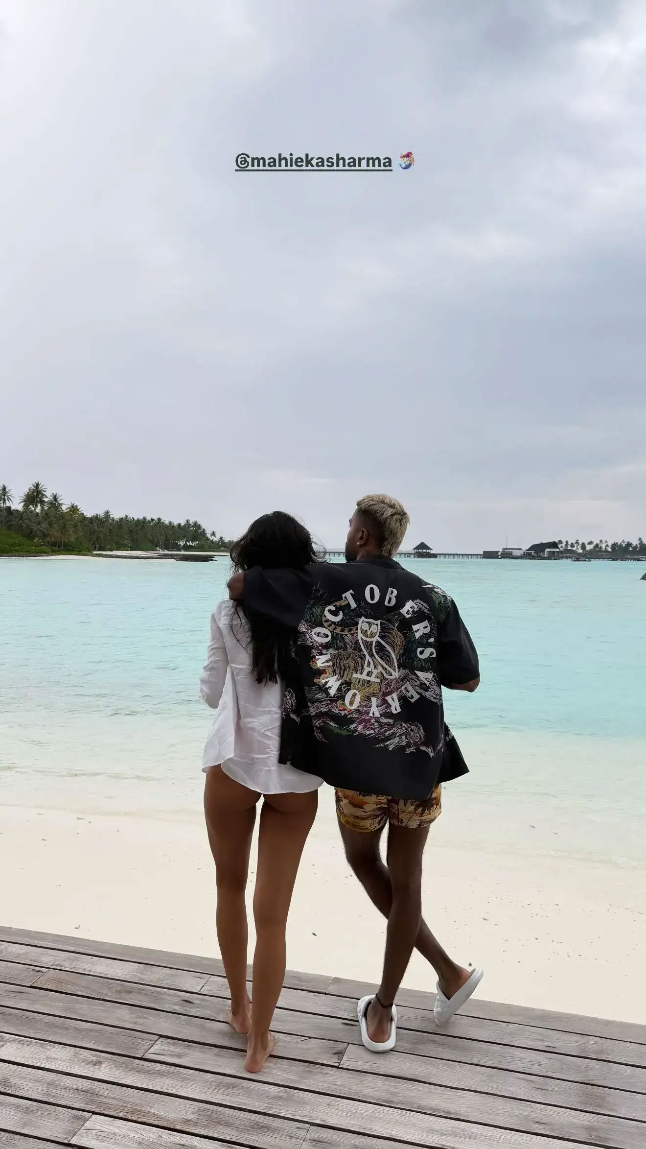 हार्दिक पंड्या ने अपनी इंस्टाग्राम स्टोरी पर जो फोटो शेयर की है, वह पीछे से ली गई गई। दोनों रोमांटिक अंदाज़ में खड़े होकर बीच को निहार रहे हैं। हार्दिक ने जहां ब्लैक शर्ट और शॉर्ट पहना हुआ है तो वहीं माहिका को इस तस्वीर में व्हाइट शर्ट में देखा जा सकता है। उन्होंने नीचे कुछ भी नहीं पहना है। वे अपने पैर फ्लॉन्ट कर रही हैं। हार्दिक ने माहिका के गले में हाथ डाला हुआ है, जो इस बात की गवाही दे रहा है कि दोनों अब आधिकारिक तौर पर कपल हैं।