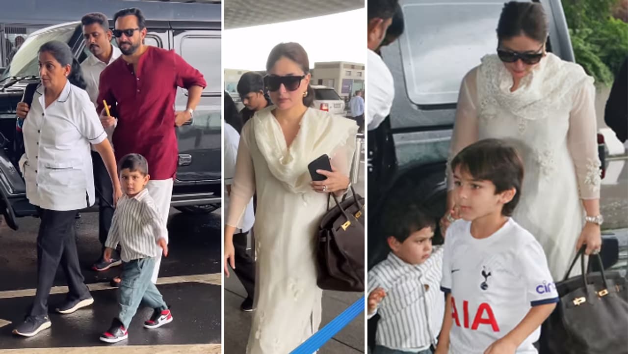मुंबई एयरपोर्ट पर करीना कपूर-सैफ अली खान सहित पूरी फैमिली फॉर्मल लुक में नजर आई।