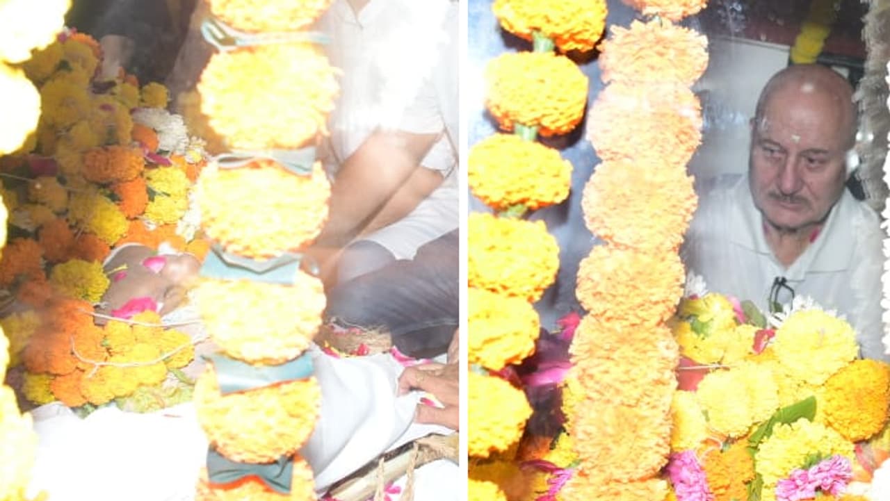 अनुपम खेर की सामने आई फोटोज में देखा जा सकता है कि वह काफी उदास है। सतीश कौशिक के पार्थिव शरीर के पास वह बैठे नजर आए।