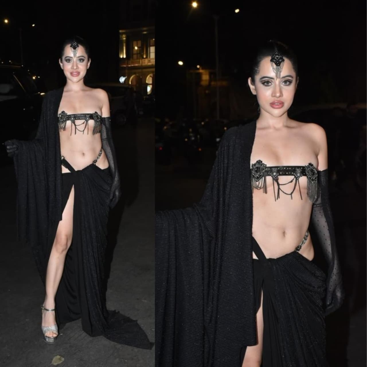 दरअसल, उर्फी जावेद हाल ही में एक स्टोर लॉन्च इवेंट में पहुंची थी। इस दौरान उन्होंने ब्रूचेस से बना आउटफिट पहना हुआ था। उन्होंने सिल्क साड़ी पहनी थी और अपनी चोटी के साथ मांग टीका भी पहना हुआ था।