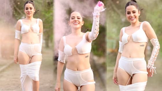 एंटरटेनमेंट डेस्क. हमेशा अपने अजीबो-गरीब ड्रेसिंग सेंस की वजह से चर्चा में रहने वाली उर्फी जावेद होली पर भी ऐसा ही आउटफिट पहनकर इंटरनेट यूजर्स के निशाने पर आ गई हैं। दरअसल, मंगलवार को होली के मौके पर उर्फी ने सोशल मीडिया पर एक वीडियो पोस्ट कर अपने फैन्स को शुभकामनाएं दीं। उर्फी ने व्हाइट ब्रा-लेट के साथ इसी कलर का अजीबो-गरीब स्कर्ट पहना हुआ है। अपने बालों की स्टाइल उर्फी ने 1986 की फिल्म 'नसीब अपना-अपना' में राधिका शरत कुमार द्वारा दी गई स्टाइल की तरह दी है। वे गुलाल उड़ाकर अपने फैन्स को होली की शुभकामनाएं दे रही हैं। लेकिन उर्फी का यह अंदाज़ देखकर इंटरनेट यूजर्स का पारा चढ़ गया है। मसलन, एक यूजर ने लिखा है, "आज होली के दिन तो कायदे का कोई सूट पहन लेती। अपने आसपास के लोगों का भी मूड खराब करेगी।" एक अन्य यूजर का कमेंट है, "बेशर्मी की हद है। हमारे त्यौहार खराब कर रही है।" एक यूजर ने लिखा है, "हमारी होली खराब करने की हिम्मत कैसे हुई? यह उसका त्यौहार भी नहीं है।"