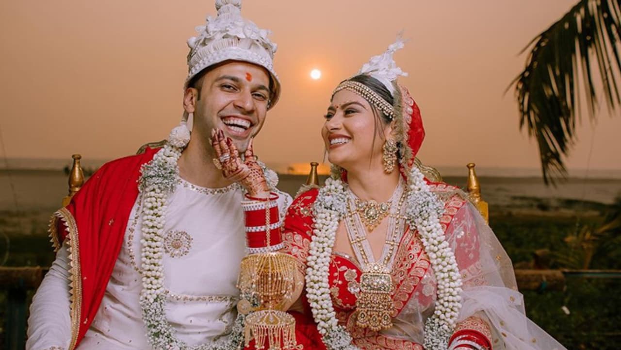 कृष्णा मुखर्जी द्वारा शेयर फोटोज में न्यूली मैरिड कपल के बीच शानदार कैमिस्ट्री देखने को मिल रही है। दोनों बंगाली आउटफिट्स में नजर आए।